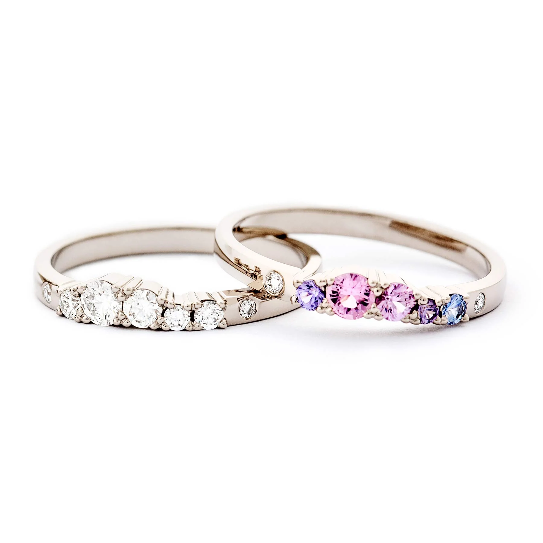 Keto Meadow 2mm wide ring is cute and lovely! The asymmetrical placement of the gemstones brings light and delicate feeling. This row ring matches perfectly with other rings of the Keto Meadow collection.