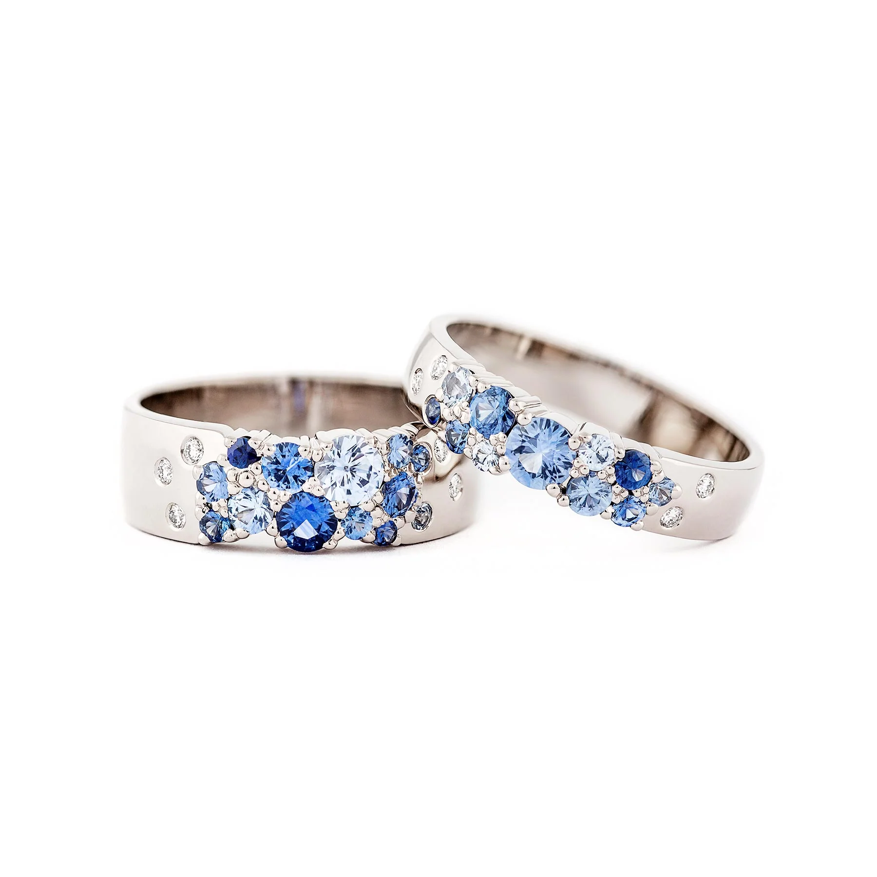 Keto Meadow 6mm Blue ring crafted in 18K gold or 950 platinum is a charming ring set with stunning blue sapphires. The asymmetrical placement of the gemstones creates a rich, floral expression inspired by Nordic nature. It is perfect as an engagement ring, wedding band, luxurious jewelry gift — or as a meaningful piece to celebrate yourself.